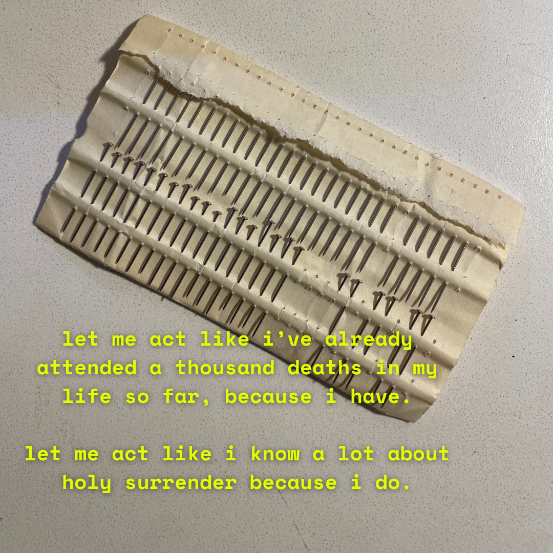 this is why we put a needle and thread between our fingers. so we can feel something real, and teach ourselves about here and not here.